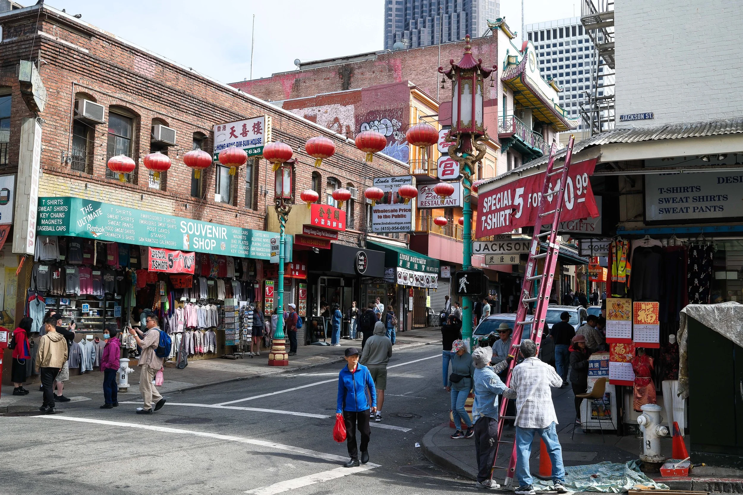 Hike (yes, it’s a good hill) a block up to Stockton and you're in a completely different world. This is where residents shop for groceries, where vendors have their produce stacked up on the sidewalk, where the street sounds like a working neighborhood and not a theme park. It's louder, and more crowded. But it's also where the real “street” photographs are hiding.