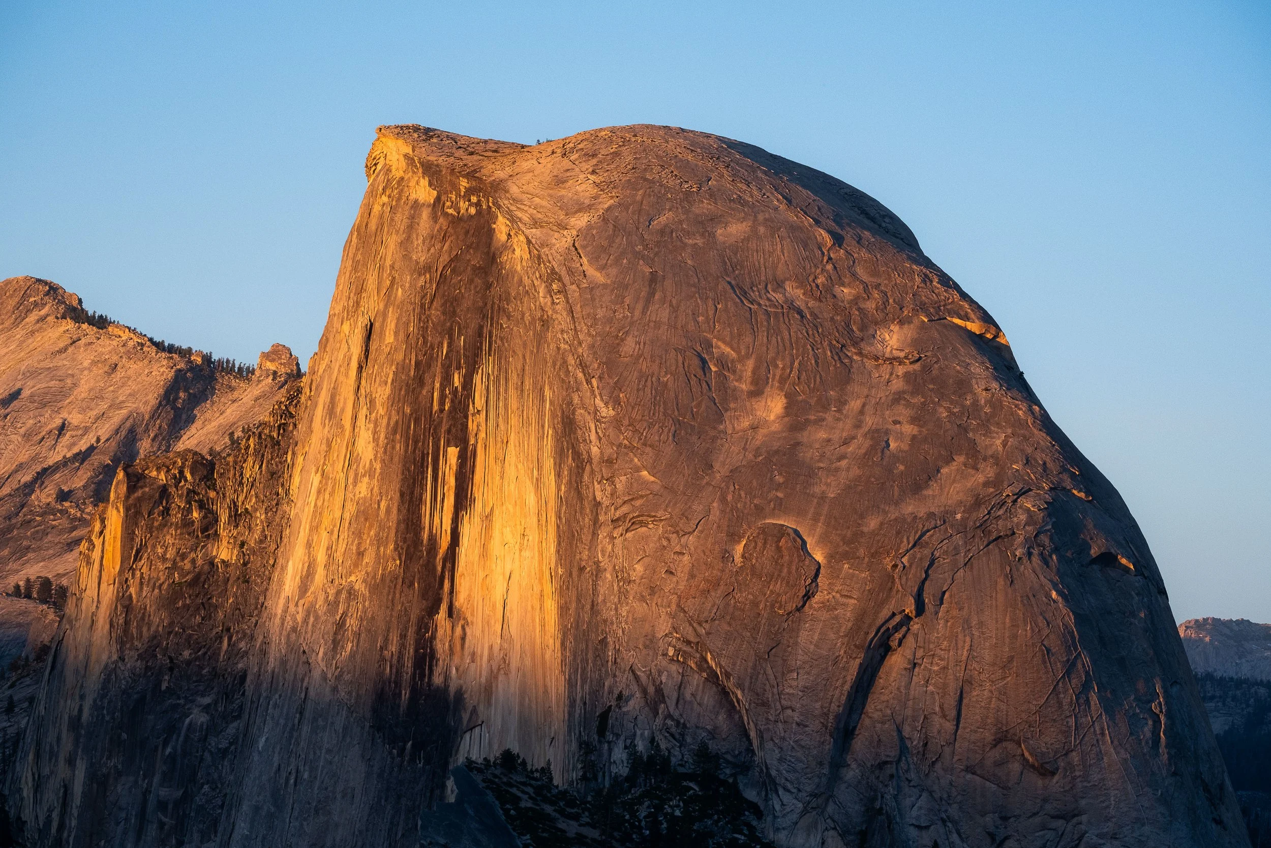 After a four-hour drive from San Francisco, plus another hour winding through the park, I got checked in and headed straight to Glacier Point for golden hour. The drive up is worth it on its own. From the overlook you get an unobstructed view of Half Dome and the full sweep of Yosemite Valley as the light goes warm. I shot from about 6:30 to 8:30 PM and came back with some of my favorite images of the trip.